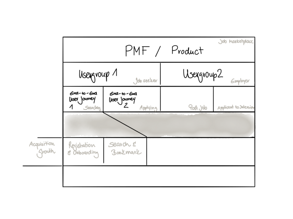 - User group: As your company grows, you might need more teams working on a single product. The next logical split is by user group. For example, in a job marketplace, one team could focus on employers, while another focuses on job seekers. This ensures each team can tailor its efforts to the needs of their specific user group.