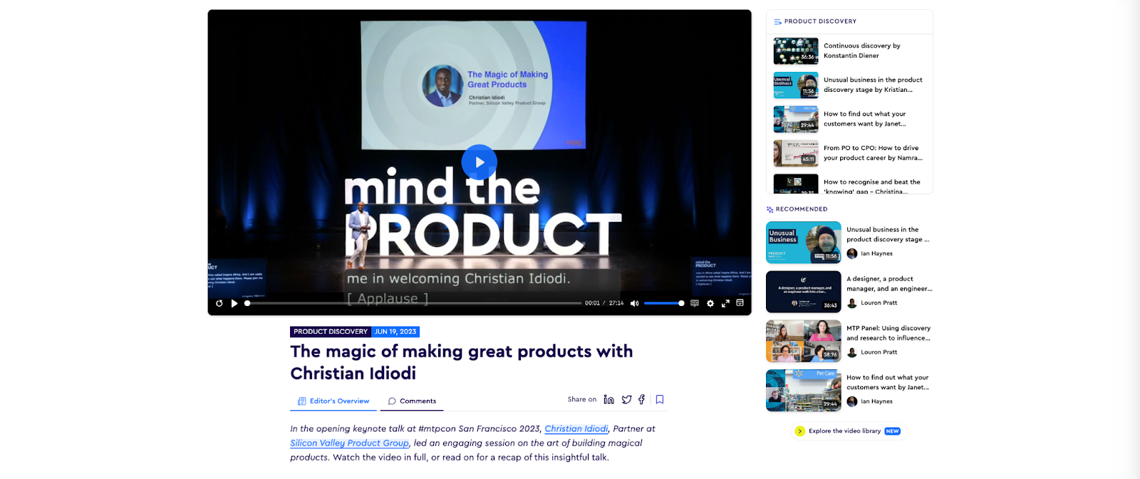 Explore the video library here and let us know your thoughts! Your feedback is invaluable, so please don't hesitate to share your thoughts and suggestions by emailing editor@mindtheproduct.com with the subject line ‘MTP video library feedback’.
