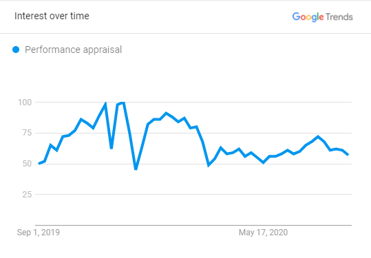 Looking at Google Trends you can see that the key words “Performance Appraisal” really starts picking up in September and peaks at the end of December – just in time for that annual performance discussions taking place in January and February before tapering off and normalizing again until the following September.