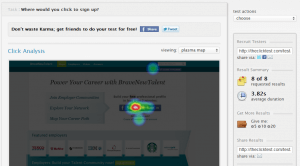 ClickTest works in a similar manner, except that it simply asks users to click on the page based on your instructions. Given simple instructions such as "Where would you click to sign up?", surprising answers can be found.