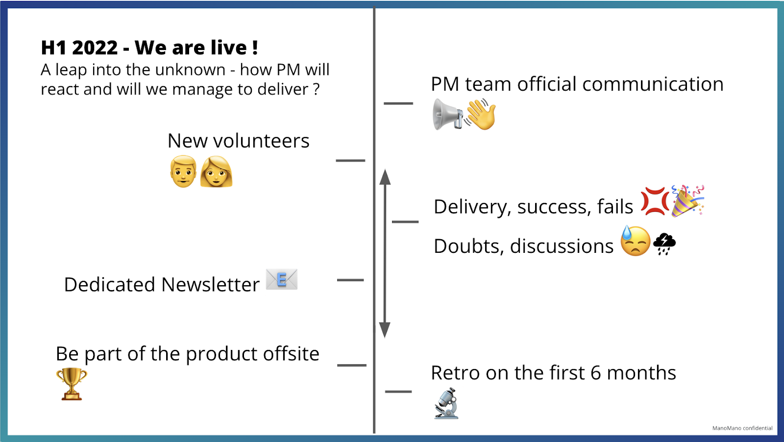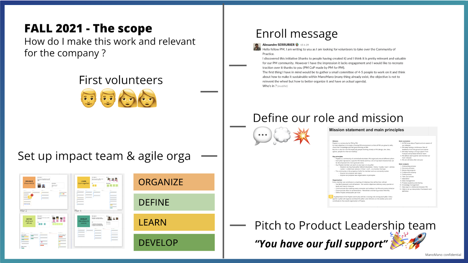 As I didn’t want to repeat the same mistakes as before, I decided to bet on volunteers and launch the first product community of ManoMano. Let’s meet POPEIE (Product OPEratIons and Excellency).