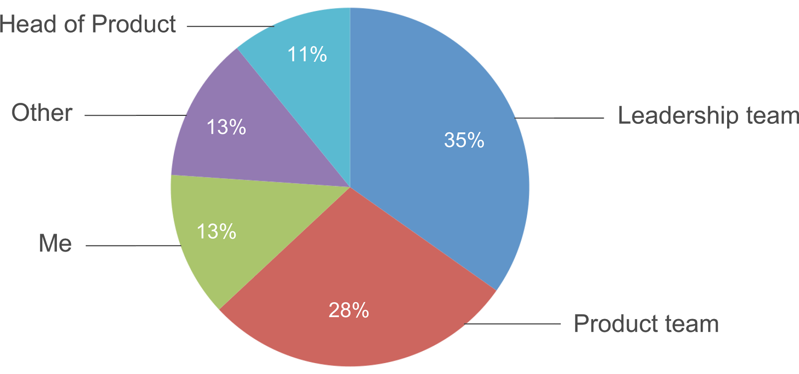 In 46% of respondents’ companies the leadership team or head of product decide what will be built next. Only 13% of product managers have the authority to decide themselves.