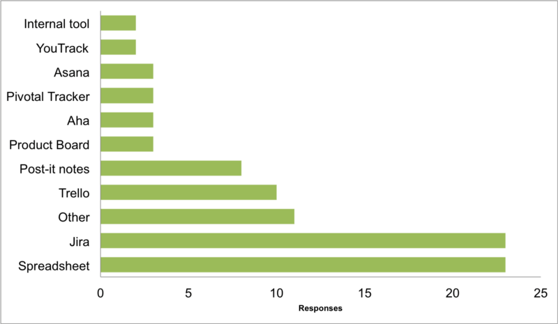 Tools such as ProdPad, Product Board, and Aha have features which try to bring some logic and process to prioritization. According to the survey these tools aren't widely used, however, with only 2% to 6% respondents selecting each.