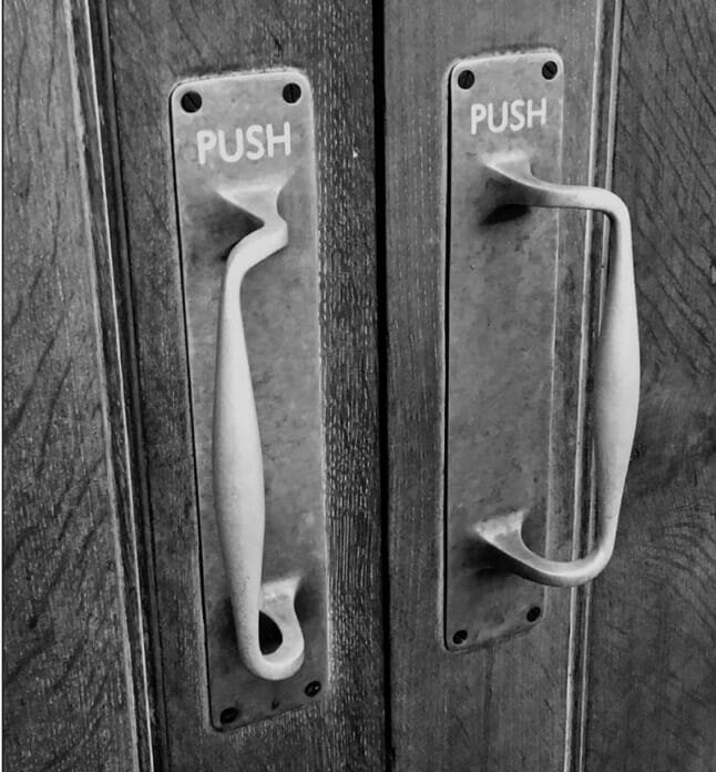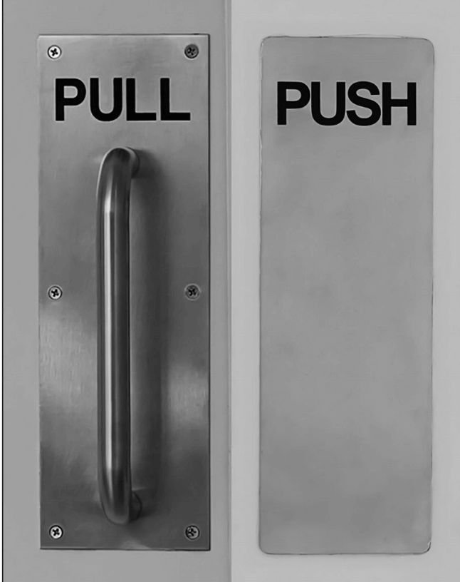 One classic example of bad design, often used as a cautionary lesson in professional design training, is what’s called a Norman door, named after usability expert Don Norman. It’s used so often in classes that many designers find it a cliché to mention it (if this is you, a twist is coming). In short, a Norman door is one that’s designed without regard for how people naturally interact with things in the world. Here’s an example: