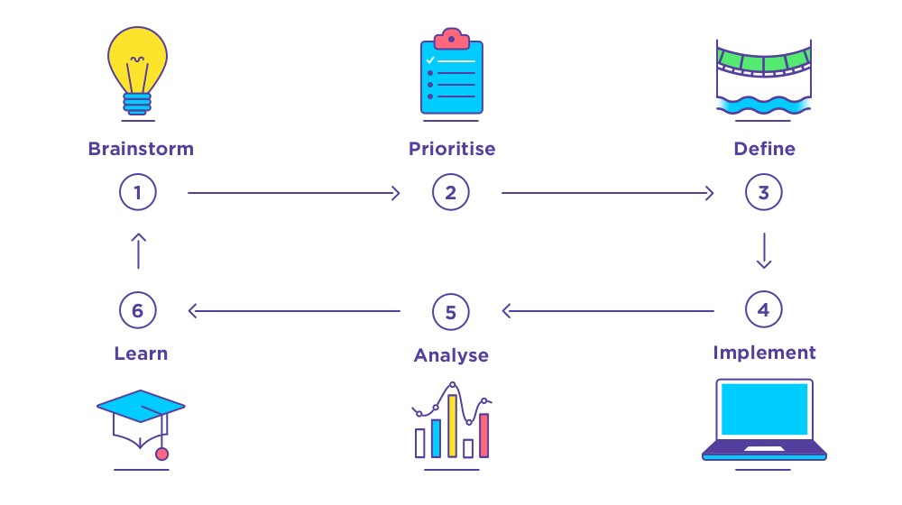 - Engage the whole team when brainstorming ideas. Once you’ve identified and understood the problem you’ll want a diverse group of minds coming up with potential solutions. Although open idea backlogs are useful, we’ve found cross-functional team meetings every two weeks dedicated to brainstorming produce better results.