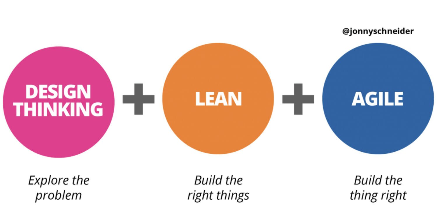Breaking down the three concepts, Jonny explains how “Design Thinking is how we explore and solve problems; Lean is our framework for testing our beliefs and learning our way to the right outcomes, and Agile is how we adapt to changing conditions with software.”