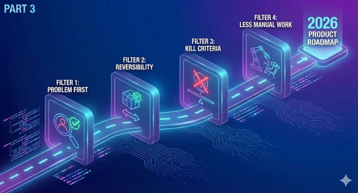 With that context, the job of product leadership is to decide which AI work belongs on the roadmap, which belongs in experiments, and which does not belong at all. The following four filters are a practical way to do that in planning sessions.