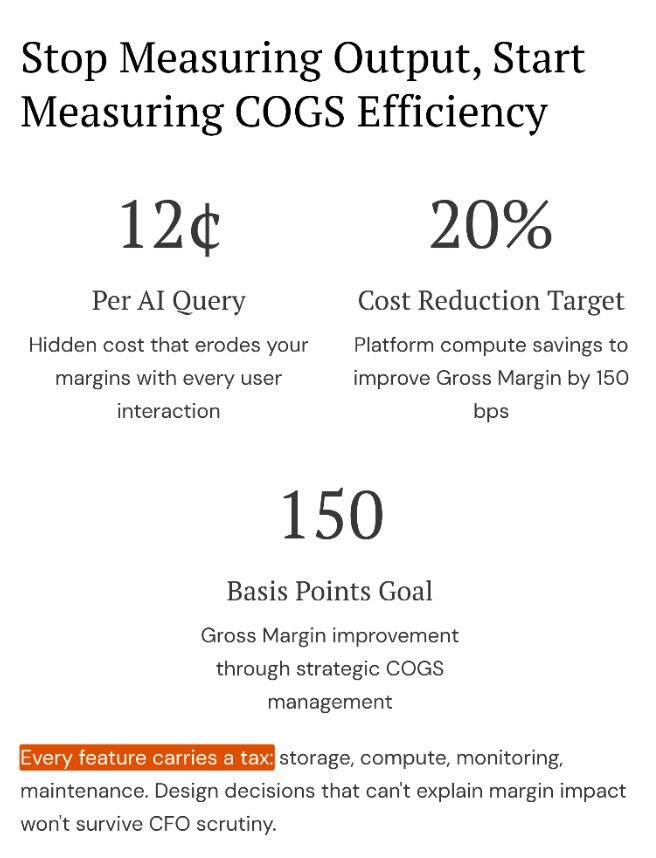 From that point forward, COGS efficiency became a standing metric in our roadmap reviews. We stopped asking if we could build it and started asking if we could afford to win.