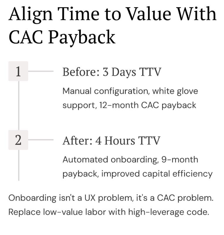 - The 2026 goal: Reduce TTV from 3 days to 4 hours to lower CAC payback from 12 months to 9 months