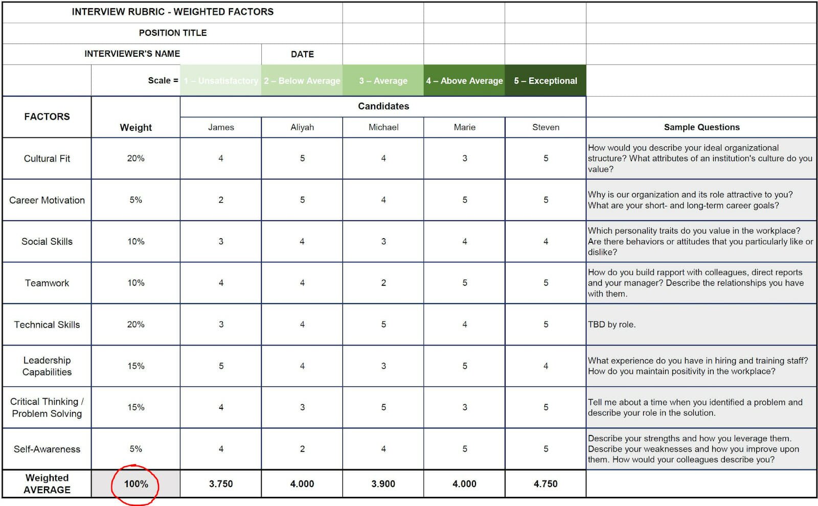 For that, you define the assessment factors you are evaluating candidates on, the same way you would for the product prioritisation drivers. You define their weights and then you score the candidates on these different weighted factors.