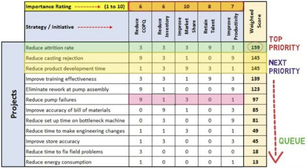Source: Prioritisation Matrix example (Lean Six Sigma 2018)