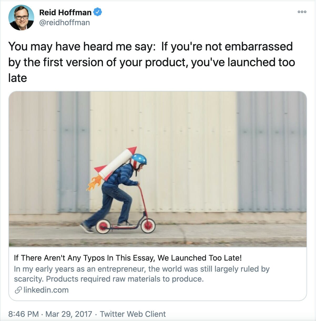 However, many would argue that MVPs are about rapidity – “no time for research, let's launch!” – perhaps citing Reid Hoffman's regular maxim: