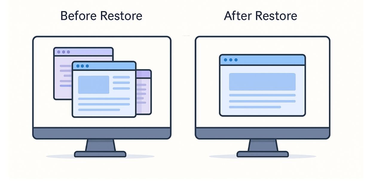 A simple example of this shows up in something as common as a multi-window workspace. Many people rely on a predictable setup — email on one side, a browser in the center, a notes app tucked on the right. After a device restore, all three apps reinstall successfully, yet none of them return to the layout the user is accustomed to. Technically, everything is “there.” Experientially, everything is missing. The user spends the next several minutes resizing, rearranging, and reconstructing a workflow that previously felt automatic. This gap — between restoring apps and restoring the way someone works — is exactly where continuity breaks down.