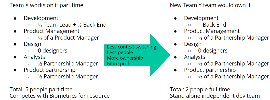 Below is my recommendation that we shut down investment into one of our product lines as the conclusion of that State of Product, in favour of doubling down on Biometrics instead.