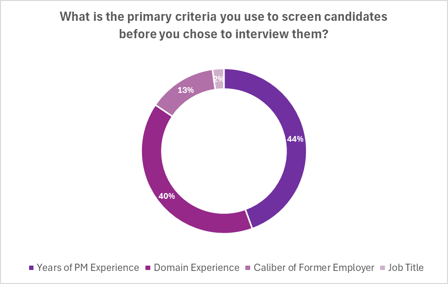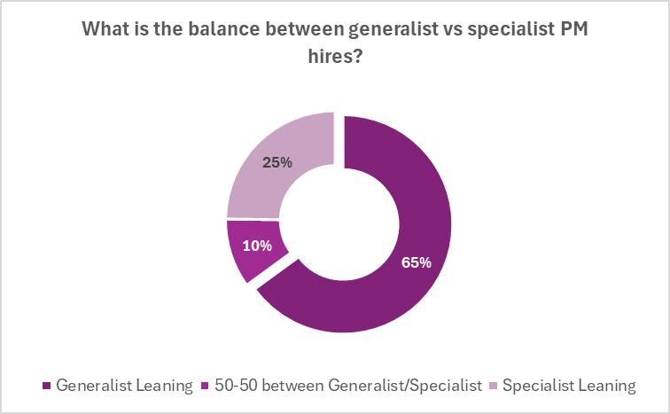 - Hiring managers advise that 65% of the product managers they have hired over the last 2 years are generalists. 40% of candidates are at risk of rejection at screening stage without domain experience.