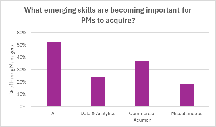 While AI Product Managers are being hired across all 3 buckets, hiring managers admit they’re still experimenting rather than scaling AI-driven product teams, with only a small subset of specialist product roles being focused entirely on AI.
