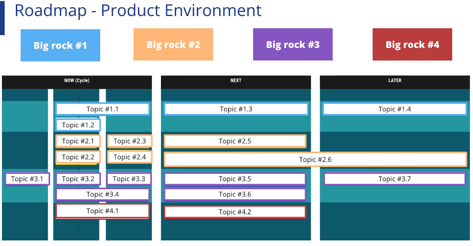 Green – Product leadership: This part concerns the product leaders and their impact within the enterprise. Is there a product vision, a product strategy? What is the position of the product in the company leadership team?
