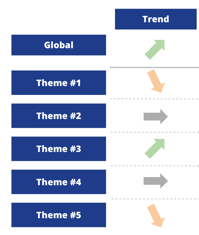These three images illustrate what the output of the product barometer can look like. You can spot big problems and if some teams are more impacted than others (on the example below team 2 seems to struggle), you can spot trends as well (if you do it on a frequent basis) and then deep dive onto a specific theme.