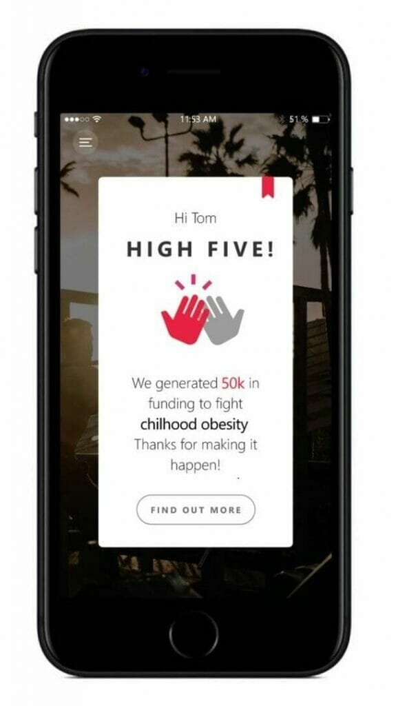 If you share with your users: “We generated 50k in funding to fight childhood obesity, thanks for making it happen,” they feel empowered. They feel like the healthy food they bought, which made their life easier, contributed at the same time to this cause. They feel like they became part of the team and the brand. They feel good by contributing the team's success.