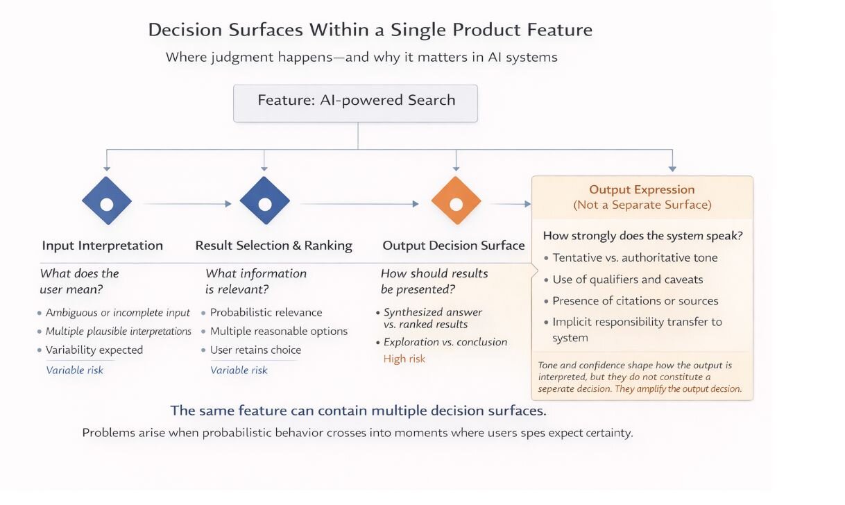 AI systems rarely fail because they produce incorrect outputs. They fail because probabilistic behavior appears in parts of the experience where users expect certainty. A summary can be factually accurate but inappropriately authoritative given the nature of the information.