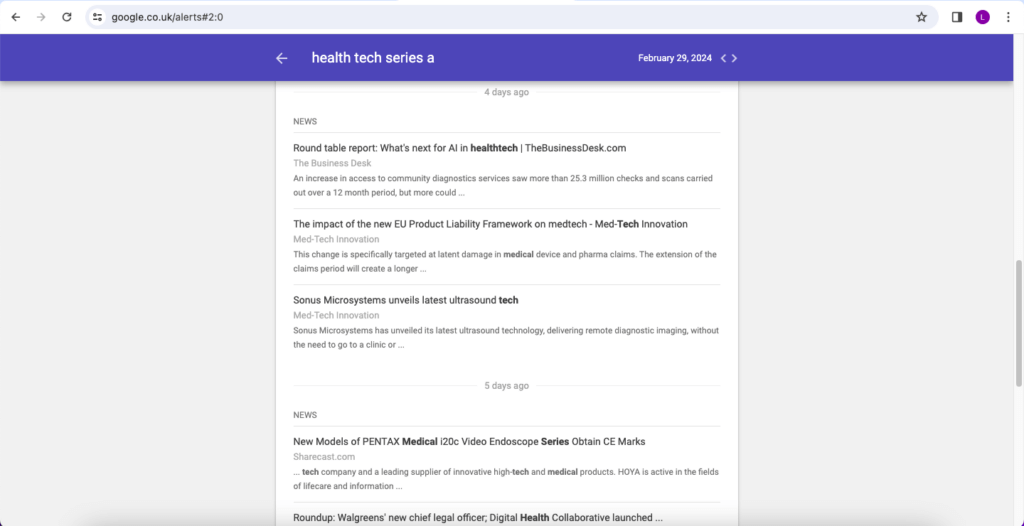 One way to do this is to set up a Google Alert to get relevant news stories sent to your inbox. From here, you can follow relevant companies.