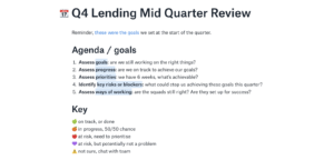 Have a mid-quarter healthcheck, to assess whether you’re still working on the right objectives, identify new risks or blockers, and reprioritise for the second half of the quarter.