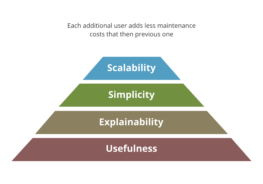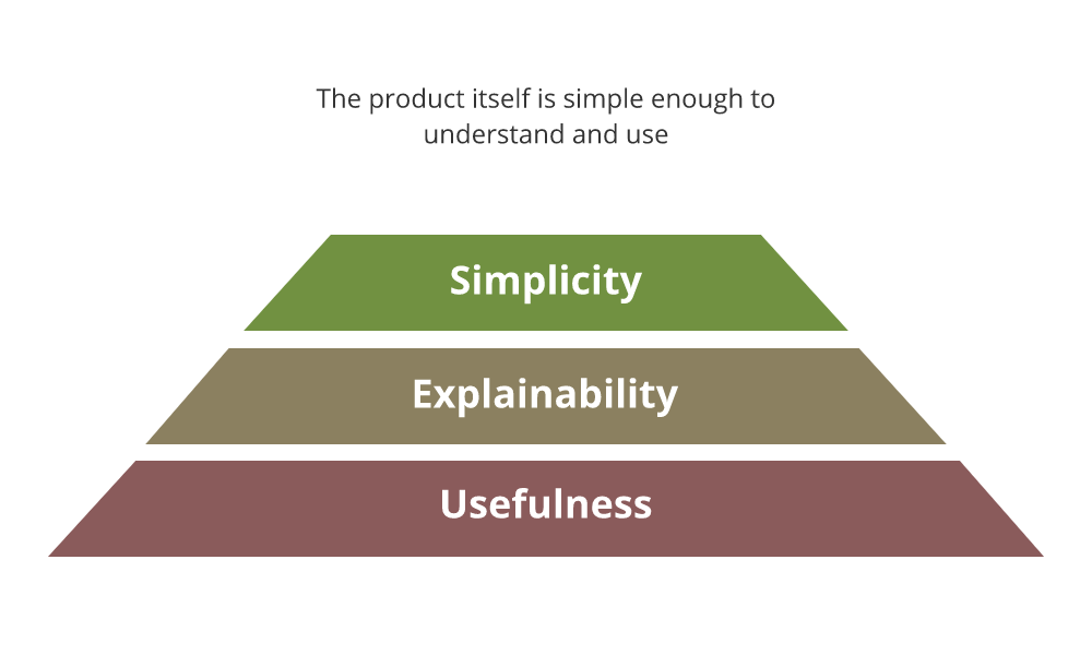 We have addressed the value proposition and the fact that it should be easy to explain. Now comes the third level which is the ease of use. Easy to use doesn't necessarily mean simple, it means “just as complex as it needs to be, at any given time”. Some products manage to layer their complexity extremely well: If you’re a regular user you will only see the basics and will not be overwhelmed, but if you’re a power user you will be able to tap into those extra complex features.