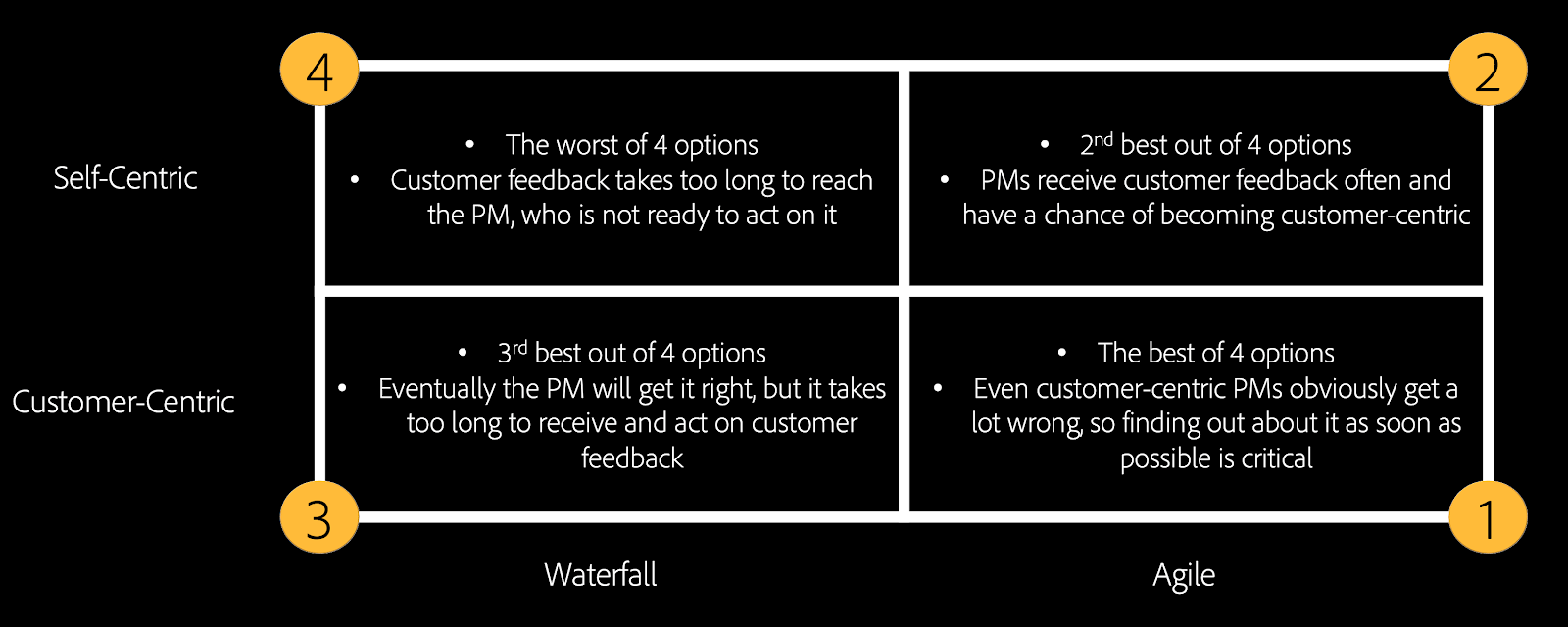 Until that moment, the customer will let you know in so many ways how bad you are as a product manager. Which hurts. Over time, this pain will make you genuinely less and less self-centric, and instead ignite an obsession to only focus on the customer.