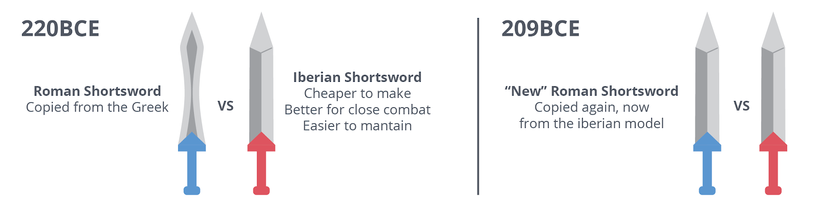 Likewise, whenever they encountered enemies that did something better than themselves (Gaulish cavalry or Iberian sword design, to name two) they were quick to absorb and adapt their own designs, or outright copy them. Tradition was only respected to the point it remained useful, and if it had to be ditched, so be it.