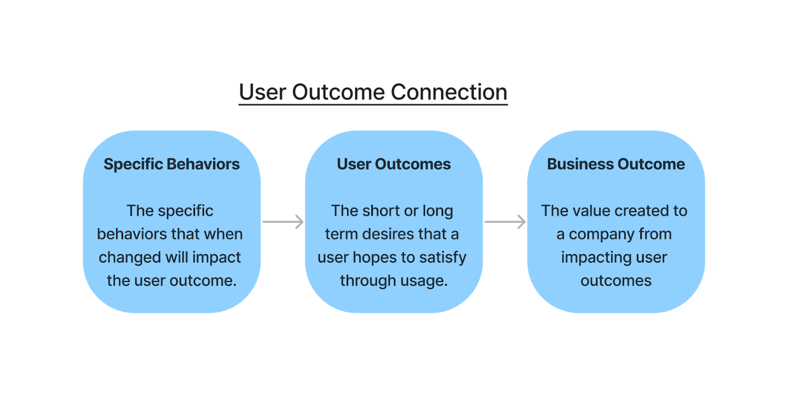 A thorough grasp of user needs is crucial, yet it is only part of building a successful business. Addressing these needs must also translate into tangible improvements in business outcomes. Thus, defining these outcomes becomes essential to the feature definition process. Furthermore, when designing a feature to solve a user problem, it is advantageous to identify specific user behaviors that the feature intends to influence. Recognizing and aiming to change these behaviors can provide a clear indication of whether a feature will meet its intended goals, focusing on the practical impact of the feature on everyday user interactions. Most product teams I talk to already think about the actions users will take by designing a feature a certain way but do so without putting any proper definitions around it.