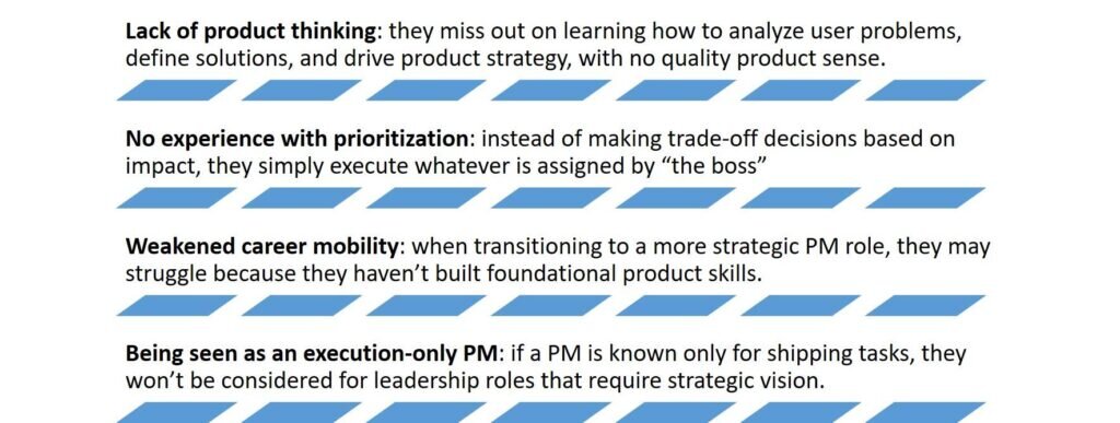 When a junior begins their career in an environment that is trapped in feature development rather than driving value, the product manager becomes a project manager who is concerned about features only.