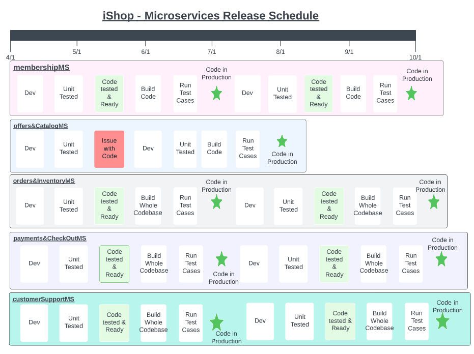To answer this, assume you are the product head of iShop which has seen amazing growth, has a large, complex monolith application, and faces multiple issues noted above. In order to solve these issues, you plan to transition your organization around Microservices.